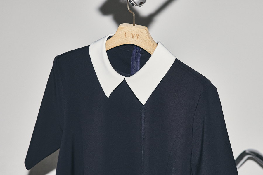 既存のオールネイビーに加え、新たにネイビー×白襟のクレリックタイプが追加。
